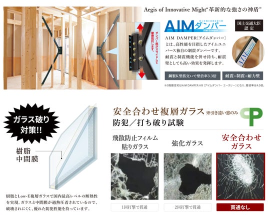 家族の笑顔と資産を守る住宅を提供することがハウスメーカーとしての使命と考え、デザイン性だけでなく性能面にも優れた住まいを提案しています。2011年の東日本大震災以降制震システムを導入し続け、2016年以降は全棟搭載を実現。窓は断熱性・防犯性に優れたYKK APの高性能樹脂窓「APW 330」を標準仕様としています。(※1)建売住宅メーカーにおいて樹脂窓を標準採用し、高性能住宅を実現するのは関東エリアでは他に例を見ない先進的な取組です。(※2)