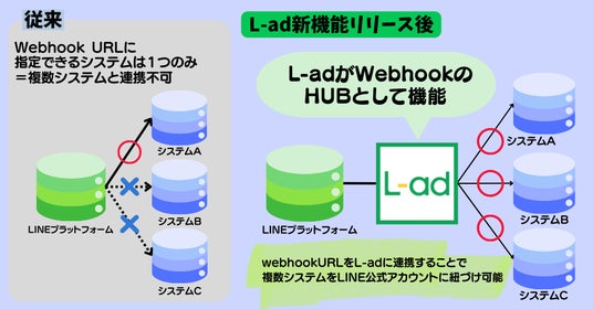 CATS株式会社(本社:東京都新宿区、代表取締役社長:松本 勇)が提供する「L-ad」が、1つのLINE公式アカウントに対して、複数のwebhookURLを紐付ける機能をリリースいたしました。