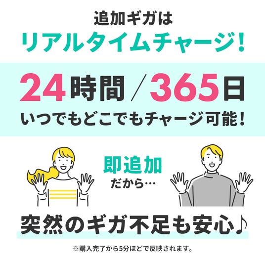 ・使わない月があってもギガを無駄にしない365日の有効期限はそのままに、ギガを多く使う方には有効期間30日の格安追加データも取り扱いを開始!