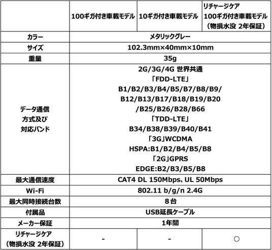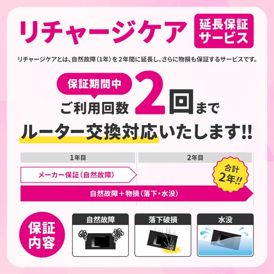 ・リチャージ WiFi 物損 水没 2年保証付き 100ギガ付き車載モデル (リチャージケア)