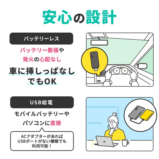 ・車に載せたままでも安心できるようにバッテリーレスのモデルがほしい!