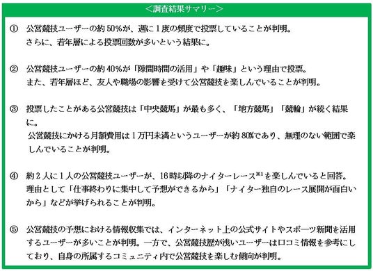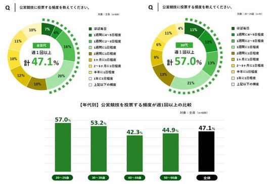 調査の結果、公営競技ユーザーの約50%が週に1度の頻度で投票していることや、公営競技歴や年代によって公営競技の楽しみ方が異なることが明らかになりました。