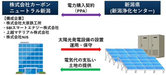 当社は、株式会社大原鉄工所、SBIスマートエナジー株式会社、上越マテリアル株式会社とともに2025年11月11日に新潟県と「新潟浄化センター太陽光発電設備導入事業」に関する契約を締結し、実施事業者に決定しました。また、契約締結に伴い、同4社は、2025年12月25日付けにて特別目的会社「株式会社カーボンニュートラル新潟」(以下、同SPC)を設立いたしました。
