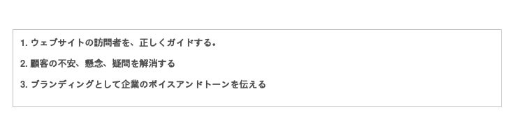 マイクロコピーは、ダイレクトレスポンスマーケティングなどで扱われてきた「コピーライティング」や「セールスライティング」のアプローチとは少し異なる、ユニークな側面を持っており、マイクロコピーの役割は、主に次の3つに分けられます。