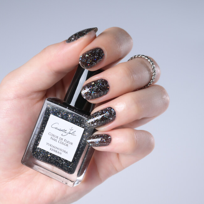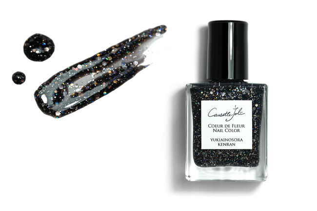 黒をベースにシルバーやレインボー、白、金のラメやホロがぎっしりと散りばめられた今回のカラーは、はなやかで美しい七夕の夜空をイメージ。