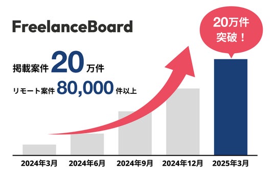INSTANTROOM株式会社(本社:東京都渋谷区、代表取締役:曽根弘介)が運営する、フリーランスエンジニア・ITフリーランスの案件検索サイト「フリーランスボード(https://freelance-board.com)」は案件掲載数が20万件を突破したことをお知らせいたします。ならびにリモートワーク案件の掲載数が80,000件を突破したことをお知らせいたします。