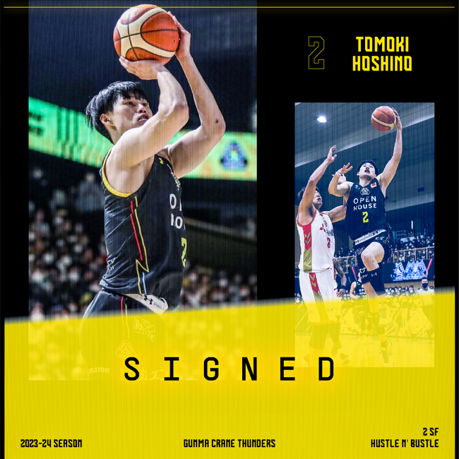 この度、群馬クレインサンダーズでは、星野曹樹 選手とのBリーグ2023-24シーズンの選手契約(継続)が基本合意に達しましたのでお知らせいたします。