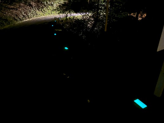 しかもこれら全てが1つの素材に融合されており、外観は境内の景観と調和する“発光する結晶”。従来の蓄光や反射材とは一線を画すデザインとテクノロジーの融合体として、特許出願中です。
