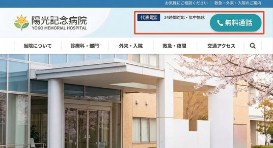 - 病院ホームページの予約ページに「無料通話」ボタンを設置し、診療予約・健診予約・予約変更・キャンセル受付に活用