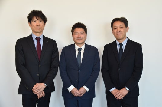 <(左から)クボタ ビジネスイノベーションユニット長 辻村克志 クレアトゥラ 代表取締役CEO 服部倫康 東京ガス ソリューション事業推進部長 岩田哲哉>