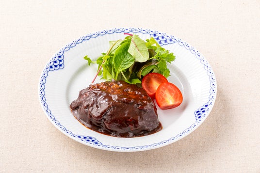 「高齢者はお肉が苦手」というイメージを持つ方もいらっしゃるかもしれませんが、実際にはお肉料理も大好評。柔らかく仕上げたハンバーグは特に喜ばれる一品です。