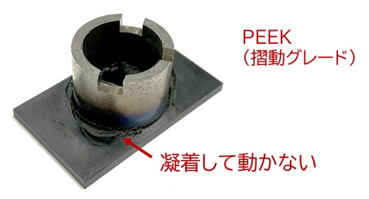 表:PTFE配合PEEK材料と高摺動性成形材料の比較