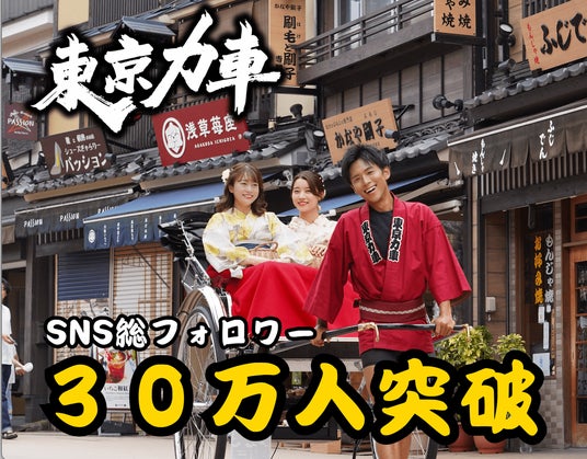「日本一オモシロイ人力車」がテーマに運用を始めたTikTok、instagram、YouTube、Xが、この度、合計総合フォロワー数30万人を突破しました。
