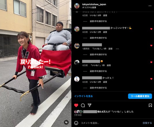2023年からは、instagramにて「東京力車 女子部」を設立、人力車×女性の意外な組み合わせからリール動画が大人気となり10万再生を超える動画を連発。