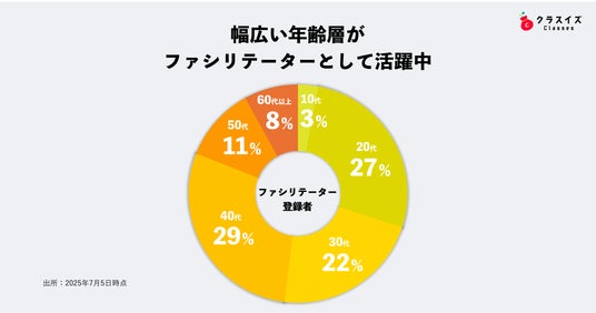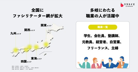 クラスイズのファシリテーターは、全国各地の10代から70代までの幅広い年代・多様な職種の人材が登録しています。