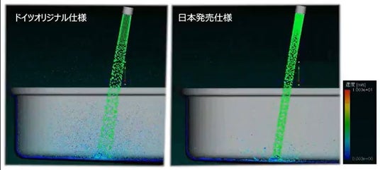グローエジャパン株式会社 マーケティング部担当者は「日本国内のお客様からの要望が多かったソフトスプレー仕様の実現に向けて、100個以上の試作で何度も調整を重ねて最適な吐水を追求しました。従来品に比べて約80%水はねが低減(当社比)されていますので、ぜひ多くのお客様に使って頂きたいです。」と述べています。