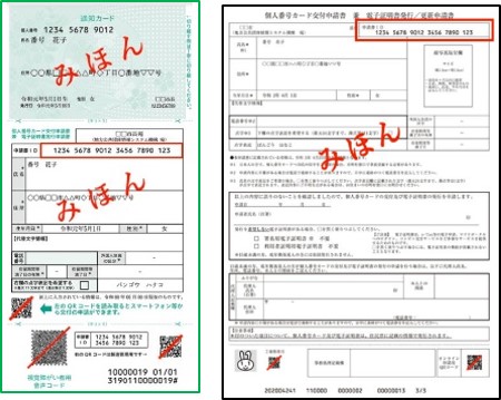 マイナンバーカードの交付申請書を使用します。本人確認書類があれば、窓口ですぐに申請書を入手できます。