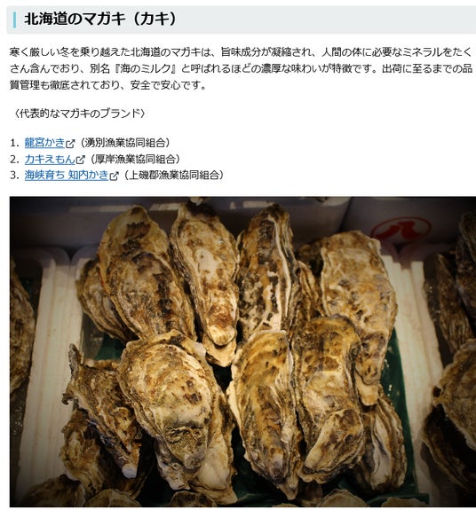 1.龍宮かき(湧別漁業協同組合)2.カキえもん(厚岸漁業協同組合)3.海峡育ち 知内かき(上磯郡漁業協同組合)
