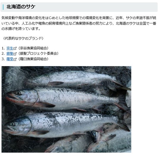 特設ページのローンチ時に紹介されるのは、全国で一番の水揚げ量を誇る「鮭」、世界中で高い人気を誇る「ホタテ」、そして別名『海のミルク』と呼ばれるほどの濃厚な味わいが特徴的な「真牡蠣」の3種です。15日(土)は鮭とホタテ、16日(日)は真牡蠣について詳しくご紹介させていただきます。