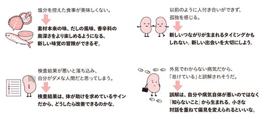 腎臓病や糖尿病といった慢性疾患とこころの健康は、互いに深く影響し合うことが知られています。実際、慢性疾患をもつ方は、そうでない方に比べてうつ病のリスクが高い傾向にあり、また、こころの不調が体の状態に悪影響を及ぼすことも少なくありません。そのため、病気というストレッサーを抱える方にとって、こころの健康を保つためのさまざまなテクニックを身につけておくことは、困難を乗り越えるための強力な武器となります。