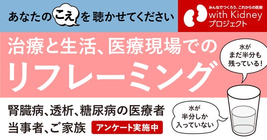 腎臓病や糖尿病に関わる当事者と医療者の方々から、ご自身や他者の感情や行動に変化を促すために行っているリフレーミングをお聞かせいただき、実践的なアイデアとして広く共有するためのアンケートを実施します。