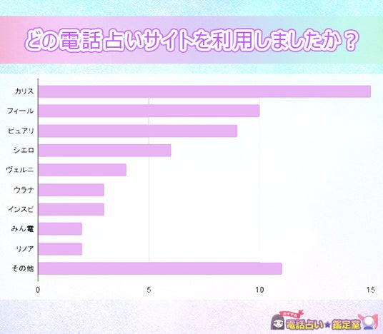 今回のアンケート結果では、「どの電話占いサイトを利用しましたか?」という質問では、カリスが最も人気があり、多様なサービスが利用されていることが明らかになりました。