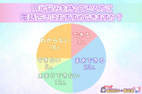 最後に、わからない」と答えた16人は、電話占いに対して曖昧な立場を取っており、その有用性についてまだ確信を持っていないことを示しています。