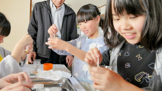 未就学児も、お兄さん・お姉さんの助けを借りながら、人生初の「実験」に目を輝かせていました。