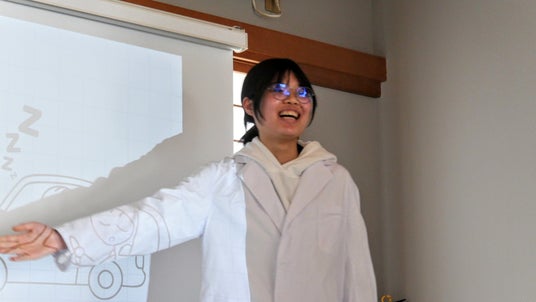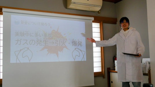 北村 謙心さん:「化学や安全についてしっかり理解し、日常生活と結びつけるためには当事者意識を持ってもらうというのが手っ取り早いと考えています。この機会に楽しみながらもどこか日常と結びつけて今後の生活への学びとなってくれたら嬉しいです」