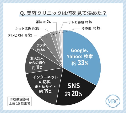 「美容クリニックは何を見て決めましたか?※複数回答可」とアンケート調査した結果、