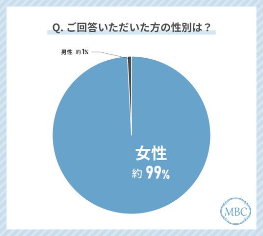 「回答者の性別をお答えください」とアンケート調査した結果、女性(99%)、男性(1%)でした。