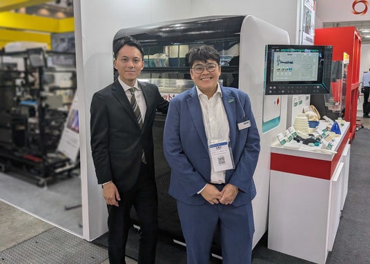 ARBURG社 Lim氏(右)と日本3Dプリンター株式会社代表取締役 北川士博(右)