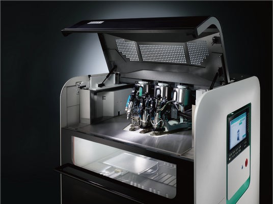 ARBURG Freeformerは、最大3つのスクリューユニットを使用したマルチマテリアル造形に対応しており、医療・航空宇宙などの厳格な材料機能・性能が求められる分野での射出成形と同様材料を使用したプロトタイピングや、硬質/軟質材料を組み合わせた機能性部品の造形、自社開発材料による3Dプリントなど、専門性の高いアプリケーションに特化した、高機能な3Dプリンターです。