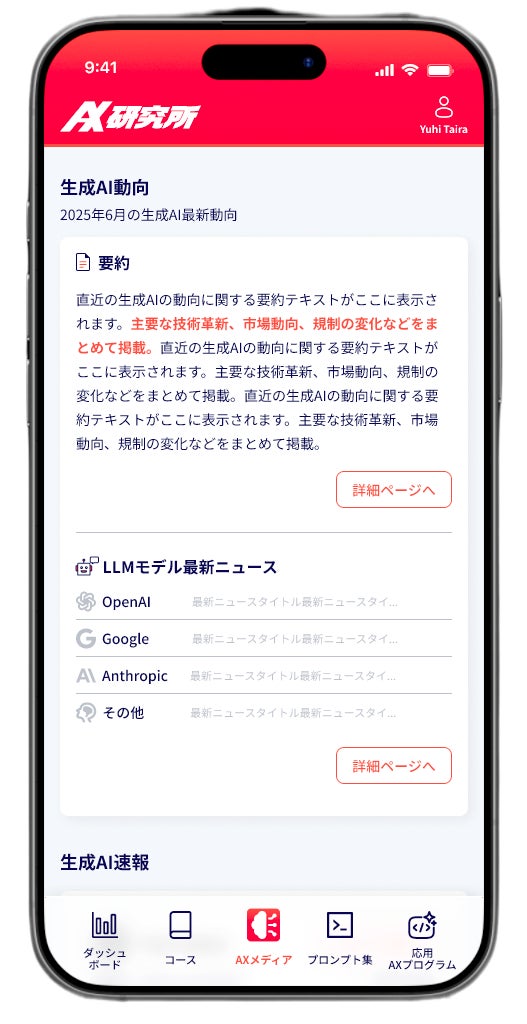 AX研究所は「AIニュースの集約、音声ラジオ、eラーニング、実務テンプレ」+「ハンズオン」で、現場で使い続けられる状態をつくることを重視します。結果として、社内DX/AX推進の中核人材を育成し、経営戦略に直結するAI導入へつなげます。