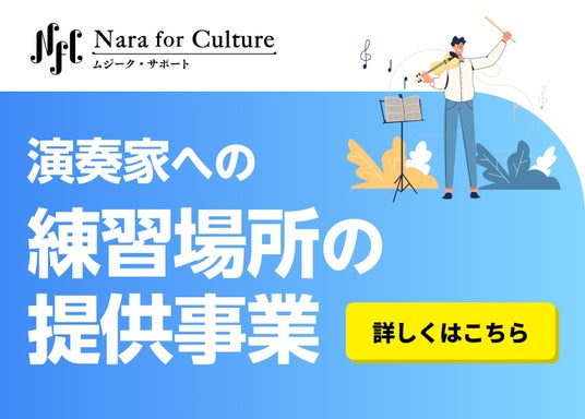 その一環として、下記の通り、奈良県の県有施設を活用して練習場所を提供することにより、演奏家の音楽練習をサポートします。