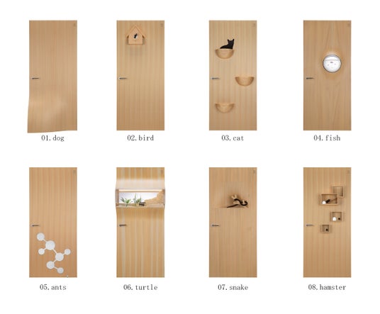 裏と表を立体的に使い分け、ハムスターが走ったり隠れたりできるドア。小さな生き物の活動