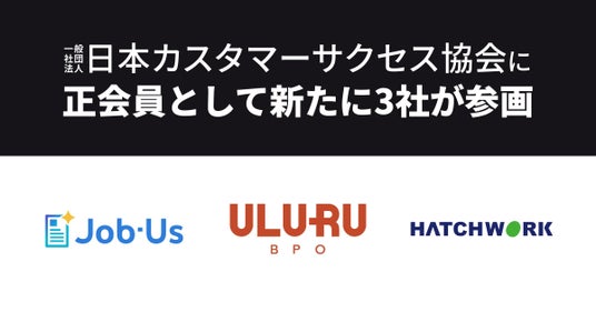 一般社団法人日本カスタマーサクセス協会(所在地:東京都中央区、代表理事:山田 ひさのり 以下 当協会)は、新規正会員として株式会社Job-Us、株式会社うるるBPO、株式会社ハッチ・ワークの3社をお迎えしたことをお知らせします。