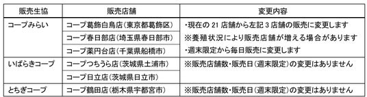 コープデリ生活協同組合連合会(本部:埼玉県さいたま市、代表理事理事長:熊崎 伸、会員生協:関東信越6生協)は、会員生協のコープみらい、いばらきコープ、とちぎコープの一部店舗で週末限定で販売している陸上養殖サーモントラウト『おかそだちサーモン』のコープみらいでの販売店舗と販売日を以下のように変更いたします。