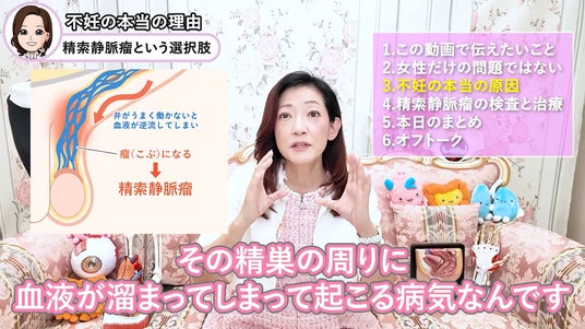 今回の動画は、妊活や不妊治療に取り組む当事者、特に女性に向けて、一般的な不妊治療の流れの中で見落とされやすい男性側の原因に目を向ける重要性を伝える内容です。男性不妊の原因の一つである精索静脈瘤について、早期に知り、泌尿器科でのエコー検査や適切な治療につなげることで、遠回りを減らし、自然妊娠の可能性を高められるケースがあることを発信しています。