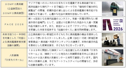 SOMPOホールディングス株式会社(グループCEO取締役代表執行役社長:奥村 幹夫)は、「“安心・安全・健康”であふれる未来へ」をパーパスに掲げ、個人も企業もいつどんな時でも、ありたい姿に向かって歩んでいける、豊かで笑顔あふれる未来の実現を目指しています。また、文化・芸術の振興を通じて、様々な立場の人々がいきいきと豊かな生活を送れる社会の実現にも取り組んでいます。このたび、公益社団法人企業メセナ協議会(以下「企業メセナ協議会」)が実施するメセナ(芸術文化振興による豊かな社会創造)活動認定制度「This is MECENAT 2025」において、SOMPO美術館の運営など4件の芸術文化振興活動が優良なメセナ活動として認定されました。
