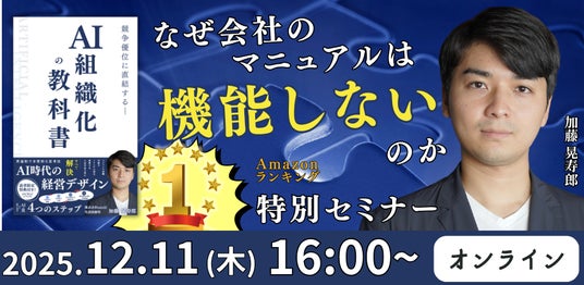 株式会社taiziii(本社:東京都渋谷区、代表取締役:加藤晃寿郎)は、オンラインセミナー「【Amazonベストセラー書籍の著者登壇】 属人化したベテランの判断を組織の資産に変える“マニュアル設計”とは」を、2025年12月11日(木)16:00~17:00に開催いたします。