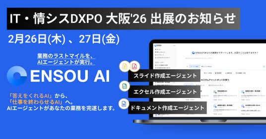 株式会社Digeon(本社:兵庫県神戸市、代表取締役社長:山崎祐太)は、2026年2月26日(木)・27日(金)にインテックス大阪で開催される、関西最大級のIT・情シス向け展示会「IT・情シスDXPO 大阪'26」に出展いたします。