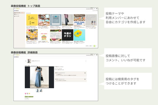 また、店舗Linkleには売り場管理のためのVMD機能が既にありますが、画像投稿機能では、従来のVMD週に依存しない柔軟な投稿で運用可能となり、月ごと・季節ごとの需要に応じた最適な売り場レイアウト管理が出来るようになりました。