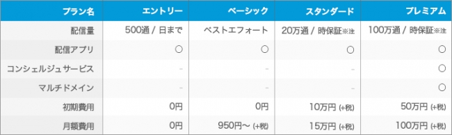 今後、1日あたり500通まで無料のエントリープラン(今夏提供予定)などの追加を予定しており、メールが届かないことにより逃していた機会損失を減らし、メール配信での顧客の維持や拡大をサポートし、コストパフォーマンスの高いメール配信環境の構築を実現します。