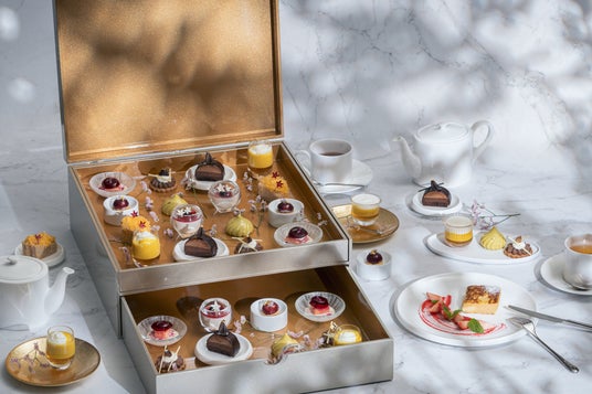 Sparkling Celebrationをコンセプトに心躍るような、コース仕立てのアフタヌーンティーを。 レストランでご提供するのは“アフタヌーンティー” パリ 5区の伝説的パティスリー「ジェラール・ミュロ」 で日本人の初シェフ・パティシエに上り詰めた近藤シェ フが監修した 8種のティーボックス。宝石のようにセイボリー4種、ケーキ 4 種がボックスに並べられ、季節ごとに変わるラインナップもお楽しみに。