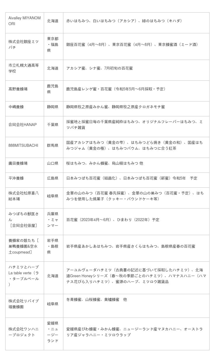 ※出店団体、はちみつの種類などは変更・追加になる場合があります