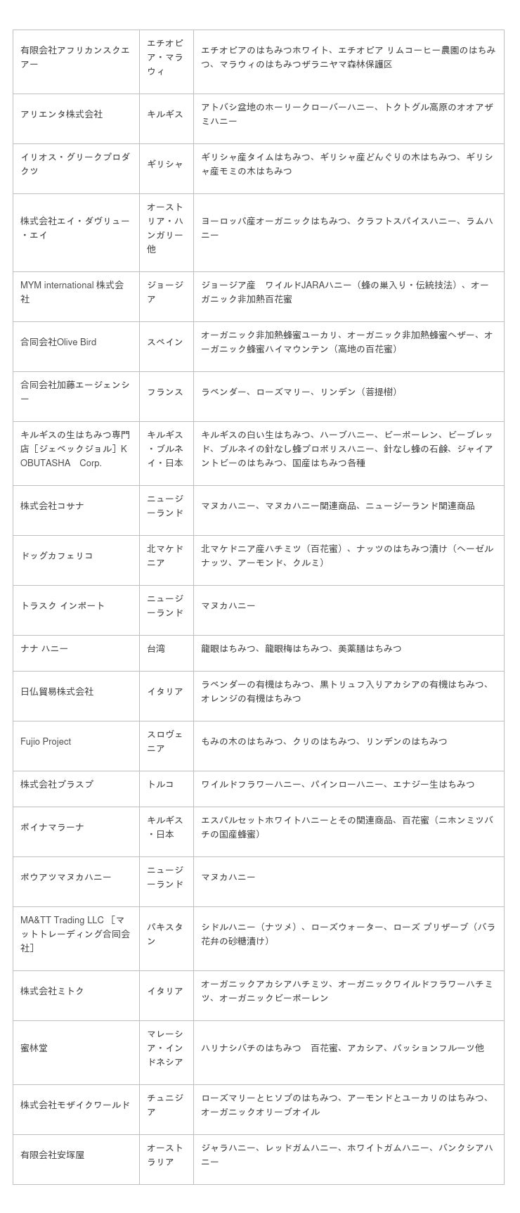 ■海外産はちみつ ※国名は主な採蜜地です