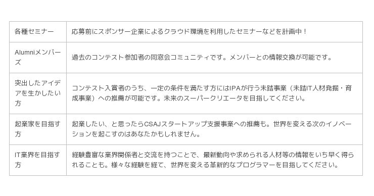 U-22プログラミング・コンテストはイノベイティブな若者の発掘・育成することを目的に、民間企業を中心として開催するコンテストです。