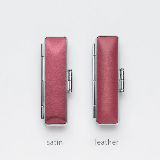 印鑑ケース表面の素材をサテンとレザー(有料)の2種類からお選びいただけます。