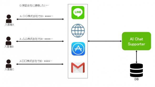 これまで、問い合わせ内容が簡単であったとしても自社のCRMなどの顧客情報を別ウィンドウで見て回答をしていたところをAI Chat Supporterをデータ連携することで、情報を統合管理でき、さらに回答を自動でパーソナライズすることが可能になります。例えば、入居者に保証会社の連絡先を聞かれた際にデータを取りに行き顧客の契約情報を基に自動で保証会社の連絡先を返すことができます。